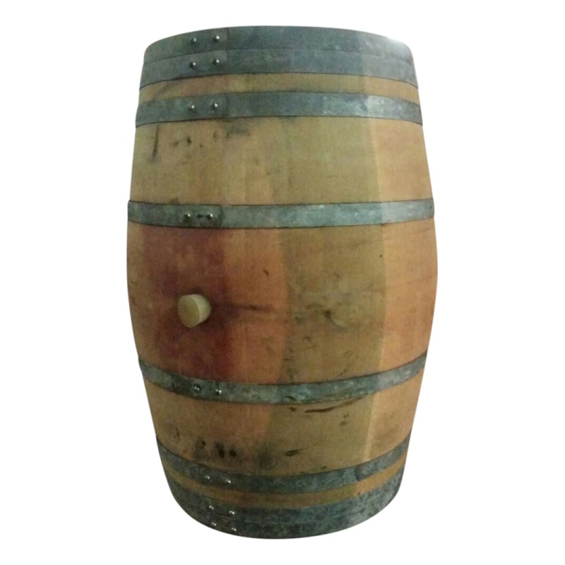 Die Abmessung dieser schönen Holzregentonne: 90 cm Höhe und einen Durchmesser von 70 cm.